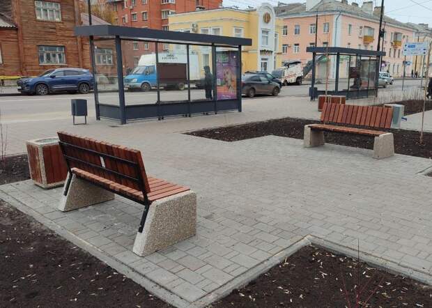 На этой территории уже видны кардинальные изменения - исчезли старые торговые павильоны, рекламные щиты и устаревшая трансформаторная подстанция. Теперь здесь аккуратно уложенная плитка на просторной пешеходной зоне. На зеленых островках высажены молодые деревья и кустарники. Территория превратилась в современный уютный сквер.
