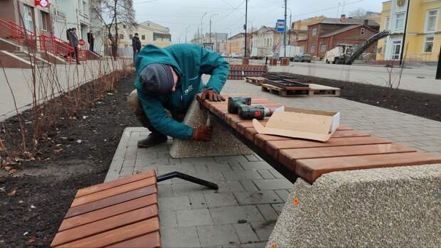 На улице Октябрьской в Тамбове сегодня приступили к монтажу новых элементов инфраструктуры. Всего на территории обновленного пространства запланировано установить 18 скамеек и столько же урн, выполненных из дерева, металла и бетона. Специалисты отмечают, что новые конструкции выглядят стильно и гармонично вписываются в общий архитектурный ансамбль территории.