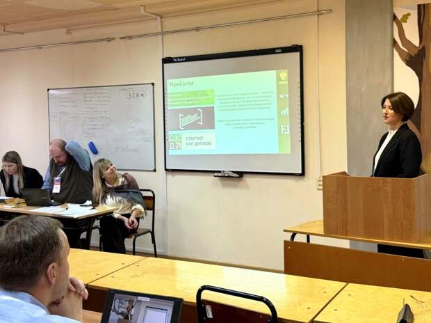 Начальник Управления по развитию молодежного предпринимательства и проектной деятельности Наталия Котова представила практику Державинского в области молодежного предпринимательства. Это Молодежный фестиваль технологий и образования «ТЕХНОдвиж» (16+), цель которого – популяризация технологического образования среди молодого поколения.