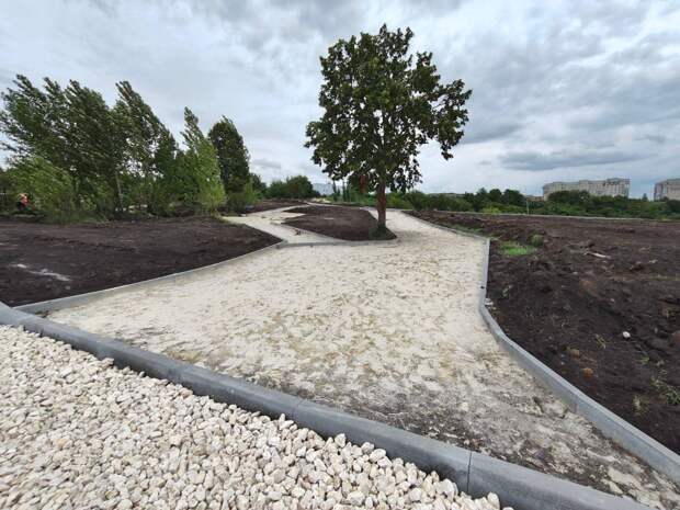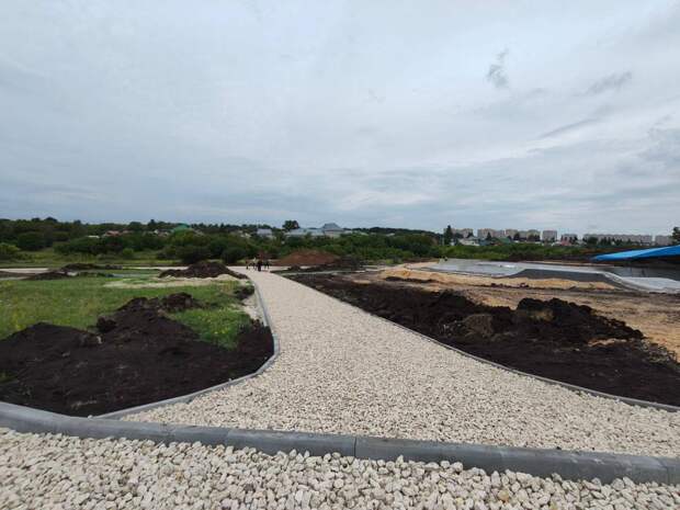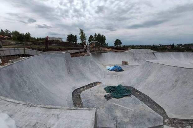 Накануне на объекте трудились около 40 человек и не менее 10 единиц техники.Почти готова скейт-площадка с плавными радиусами и перепадами высот для катания. Установлен бордюрный камень вдоль будущих дорожек, идёт укладка геотекстиля, щебня и песка перед финишным покрытием, а также проводятся другие виды работ.