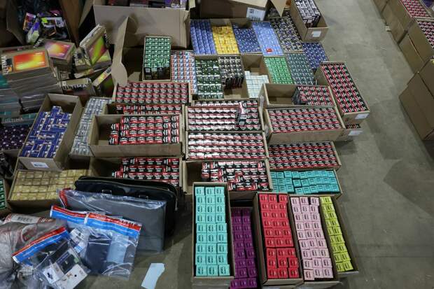 По сообщению официального представителя МВД России Ирины Волк, по адресу проживания подозреваемого, в автомобилях и складских помещениях было обнаружено более 150 тысяч немаркированных электронных сигарет, картриджи и жидкости для них, а также бухгалтерская документация и другие предметы для доказательств. Общая стоимость изъятого превышает 126,5 миллионов рублей.