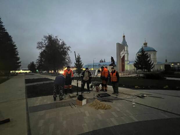Сейчас на объекте завершается укладка финишного покрытия из тротуарной плитки. Идет монтаж малых архитектурных форм. Подрядчик обещает к концу недели включить на объекте освещение, благодаря чему центральная площадь города будет иметь совсем другой вид. Скоро здесь будут установлены световые арки и уличный светодиодный экран.