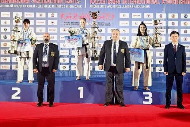 Кристина Урусова из Тамбова завоевала серебряную медаль в дисциплине "ката". Вместе с ней на пьедестал поднялись представительницы России — Евгения Кузнецова и Инна Коршунова.