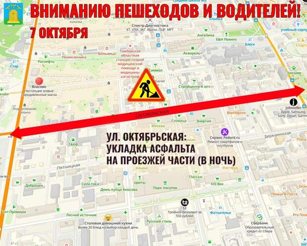 На улице Октябрьской ночью планируется укладка асфальта на проезжей части. На Карла Маркса будет проводиться установка дорожных знаков.