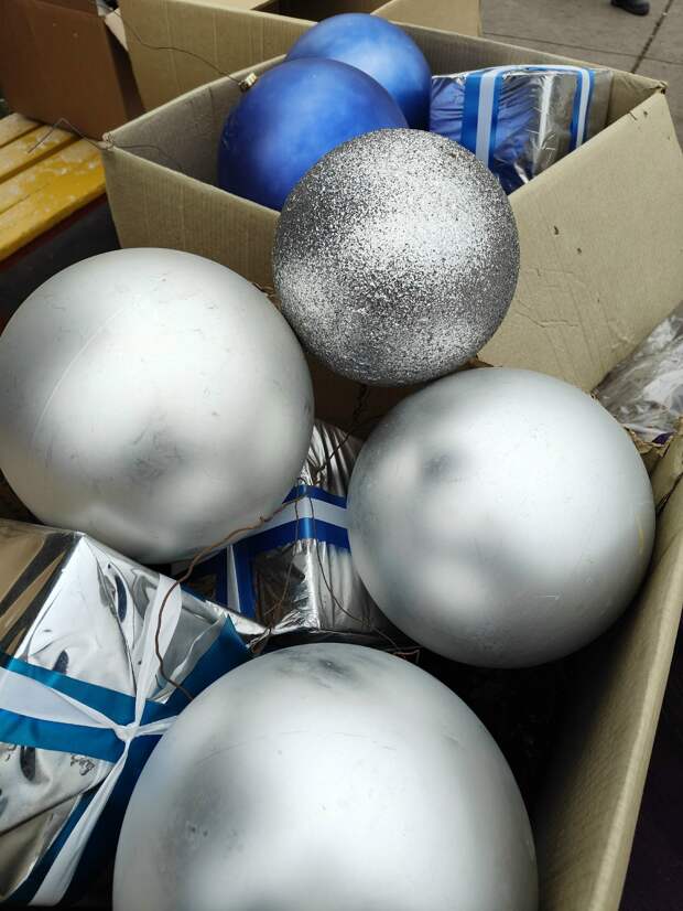 Процесс начинается с развешивания гирлянд, затем следуют украшения. По сравнению с прошлым годом дерево заметно выросло и стало пышнее, поэтому прежнюю гирлянду пришлось удлинять.