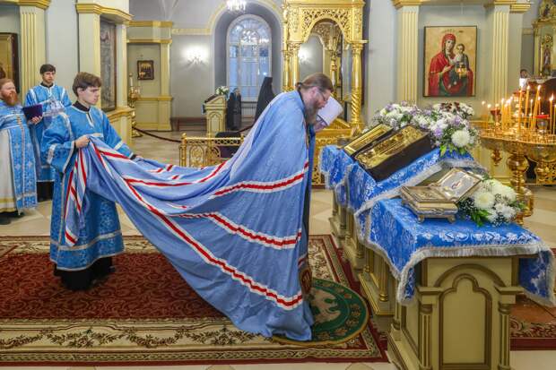 В Тамбове 7 октября в Спасо-Преображенском кафедральном соборе состоялись торжественные проводы святынь Свято-Введенского Толгского женского монастыря Ярославской епархии. Проводы возглавил митрополит Тамбовский и Рассказовский Феодосий.